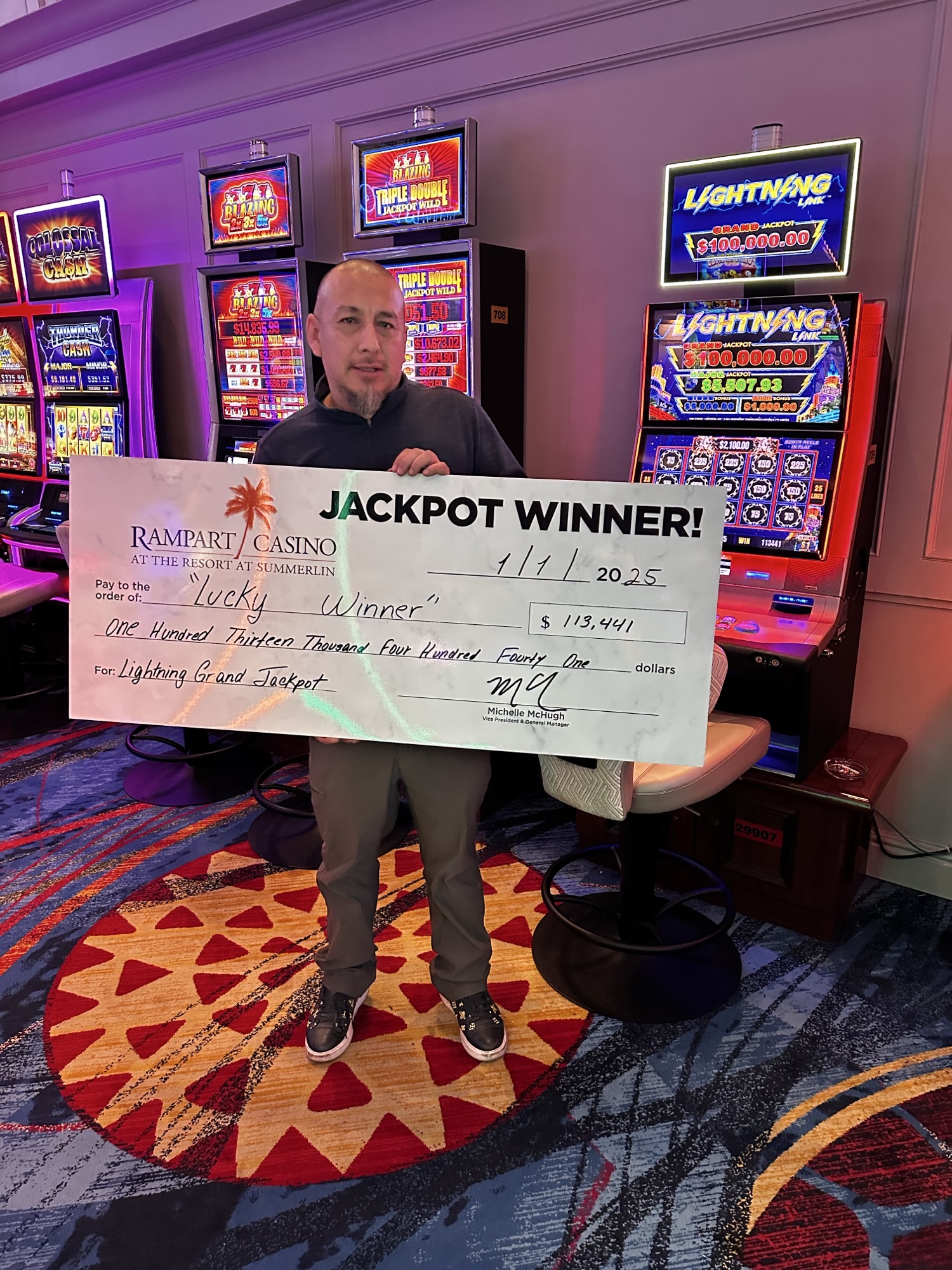 LAS VEGAS (Jan. 2, 2025) – California visitor William V. struck it rich at the start of 2025, turning a $75 gaming session into a six-figure payday at the Rampart Casino in the Summerlin area of Las Vegas. He was playing a $1 denomination Lightning Link slot machine for about two hours when the Grand Jackpot symbols aligned, delivering a thrilling $113,411 payout. The out-of-state player’s modest investment yielded more than 1,500 times his original stake.