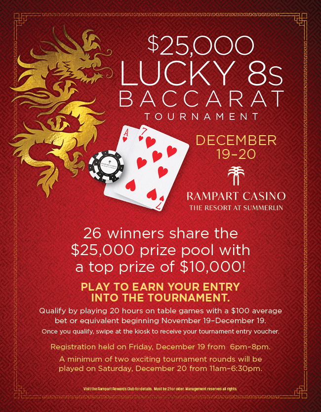 Qualify by playing $100 hands for 20 hours beginning Wednesday, November 19 – Friday, December 19, 2025. Once you qualify, swipe at the kiosk to receive your tournament entry voucher.
