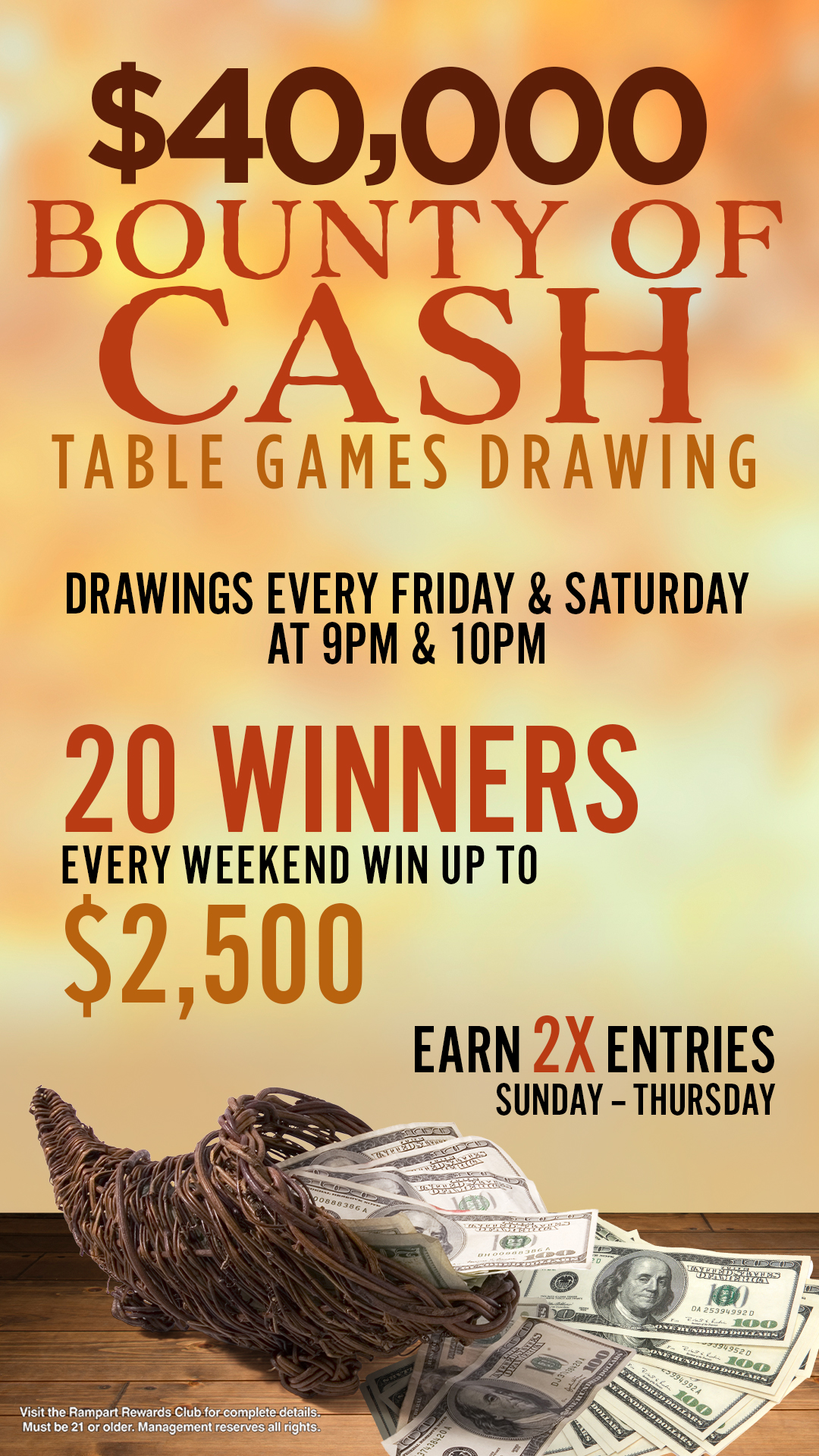 $40,000 Bounty of Cash Table Games Drawings